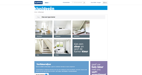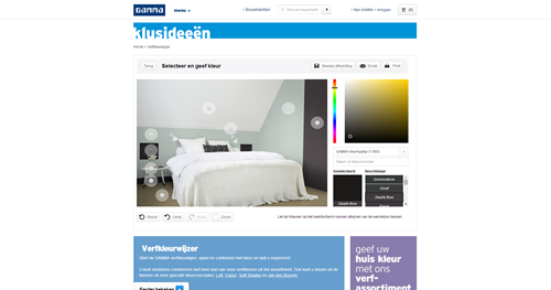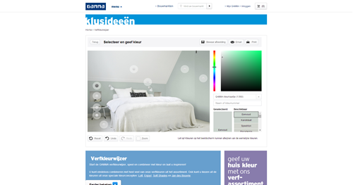 We built a configurator for the DIY stores Gamma Netherlands and Belgium which is implemented on their website. The configurator is in both Dutch and French. It’s a color inspiration tool that lets customers recolor a chosen room scene. The paint colors available in the online color chart can be bought at the stores.